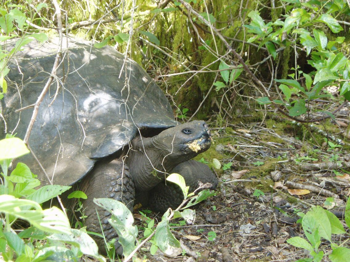 In the afternoon, we took a tour to a "ranch" within the national park to see "wild" tortoises on the hoof, plus do a little bird watching. We saw a half dozen or so large tortoises in a two hour hike of the ranch. It was indeed more interesting to see them in their natural habitat. The terrain was fairly wild with dense growth but a very high number of fruit trees - passion fruit, guavas, oranges, etc plus shallow ponds. The tortoises were grazing greedily on the fallen fruit and I wondered if we were walking through what was once extensive orchards but is now so heavily overgrown, is hardly recognizable as such. The tortoises migrate annually across the island and would certainly have figured out a good campsite over a hundred years or so.