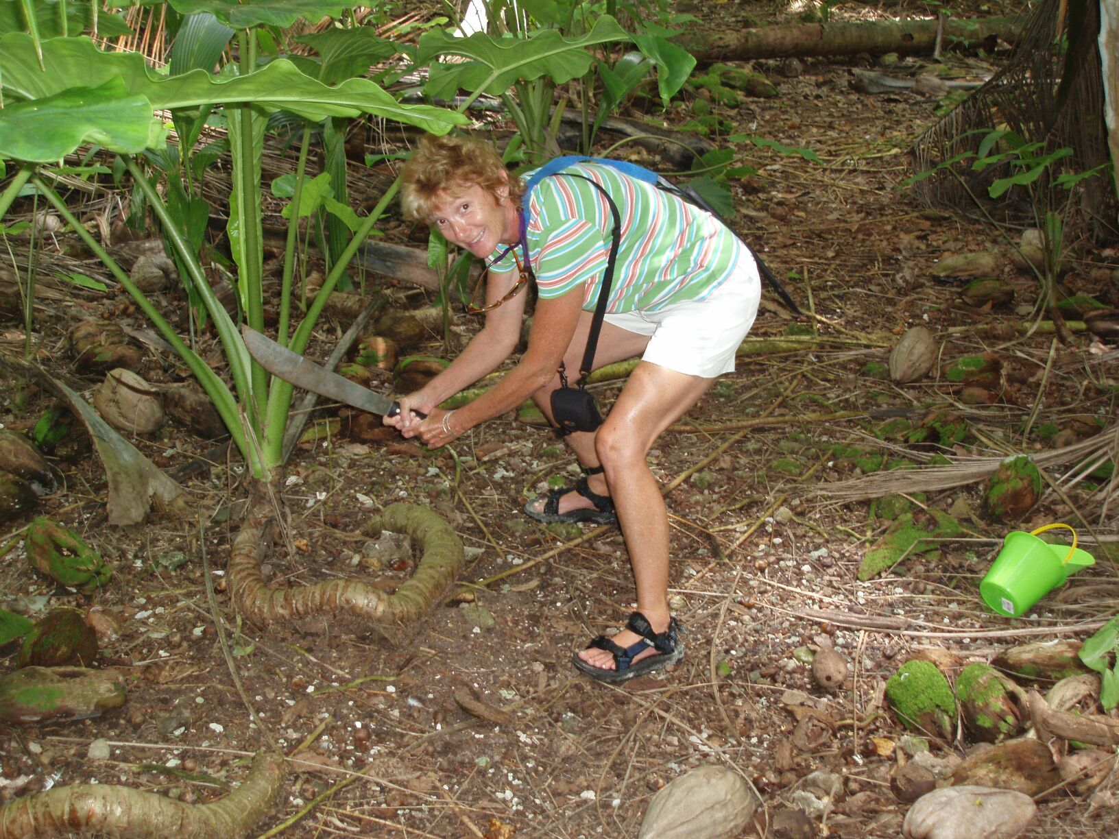 jungle trails were overhung with palm fronds and we could hear the sound of feral roosters calling. One of the clearings