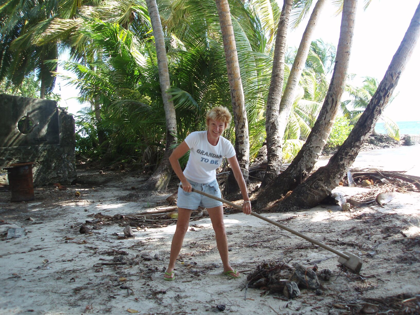 This has been a great stay in Chagos. We have snorkeled the reefs and the bombies in the lagoon and Annette has been able to enjoy some female company for a change. She has hacked down, husked, cracked, and shredded coconuts. She has fished, baked bread, and shredded coconut cookies on a ground oven and generally had a fine time playing