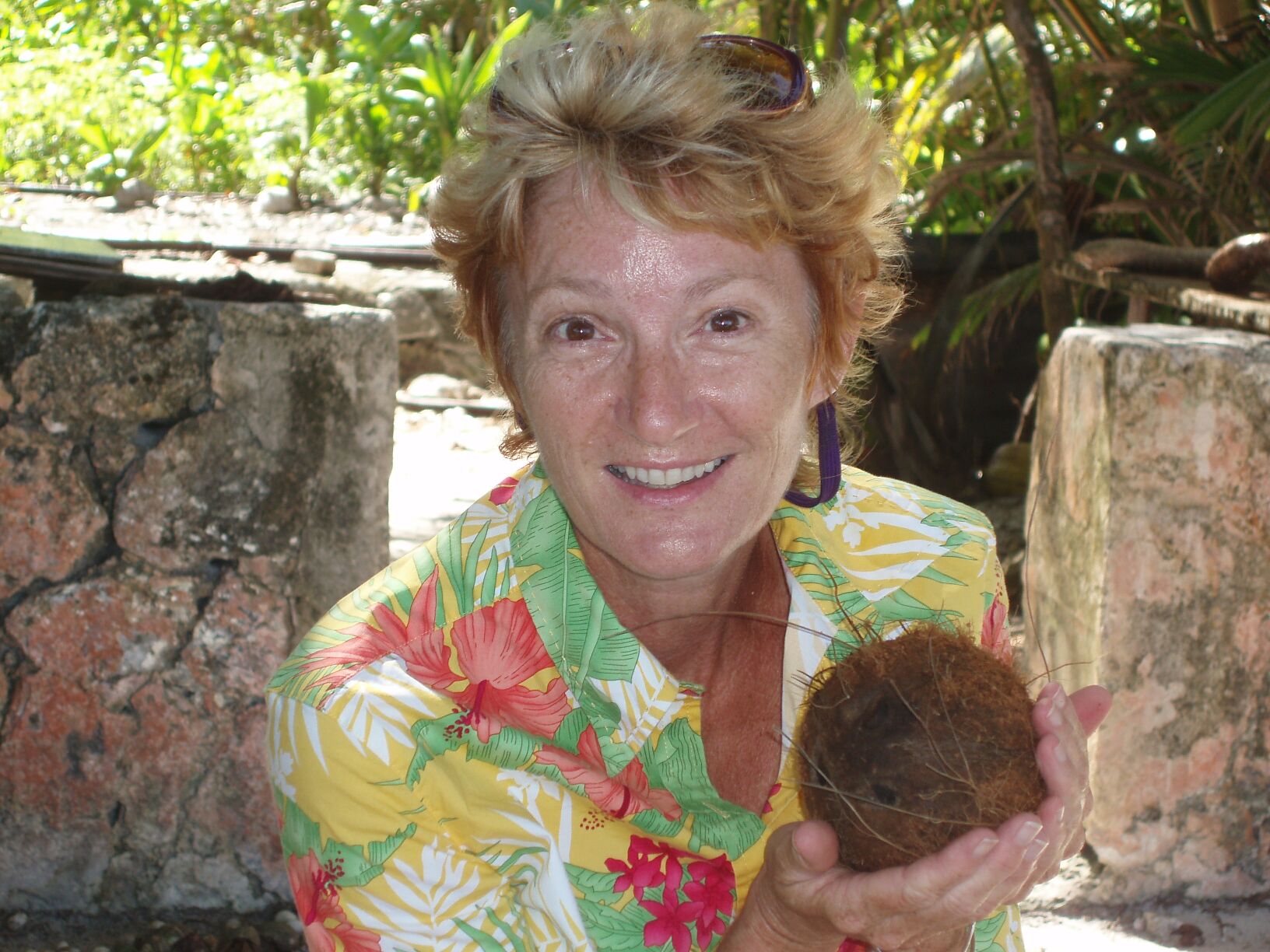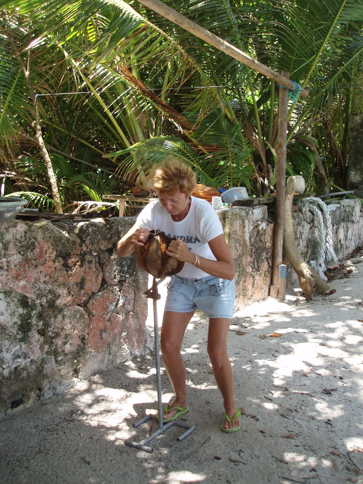 fast and just scooted them aside and tumbled them. Once the rat had triumphed, it buried itself inside the coconut while Alev from SV Muggerl took photos at a range of perhaps 12 inches. She twice