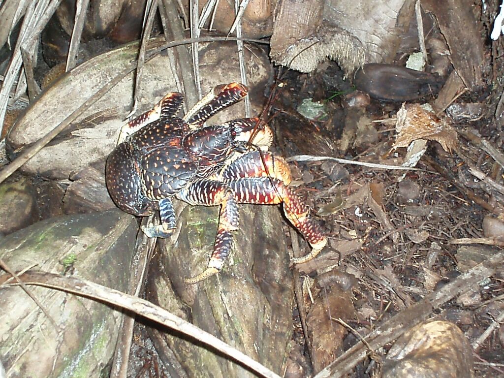 night, we watched a rat attempt to dislodge two large hermit crabs from the coconut they were eating. The crabs were as big as the rat and they tried to nip it with their pincers. The rat was too
