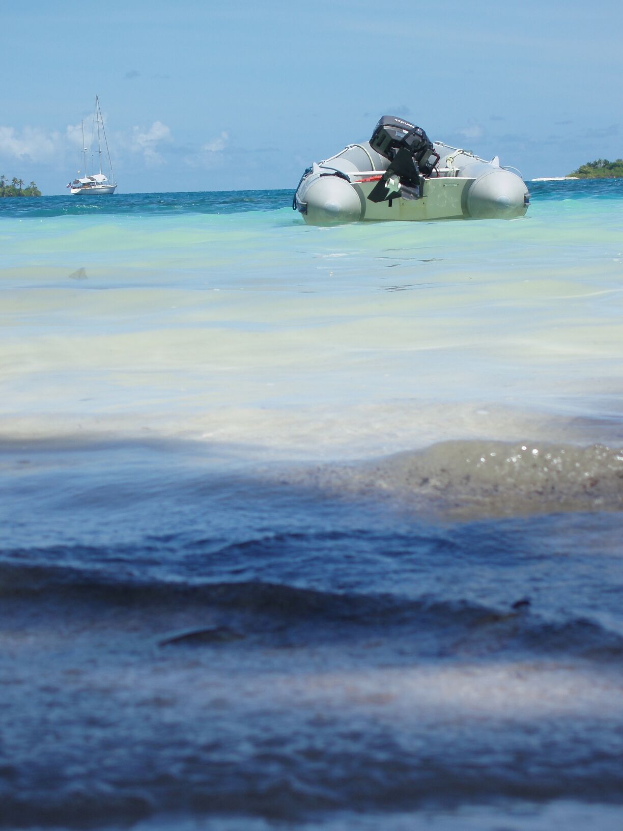 pre-sundowner volleyball game. The composition of the teams was sort of fluid, as several players had to leave the court in order to adjust their dinghy anchors to compensate for the incoming tide.
