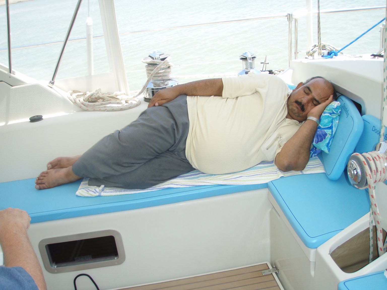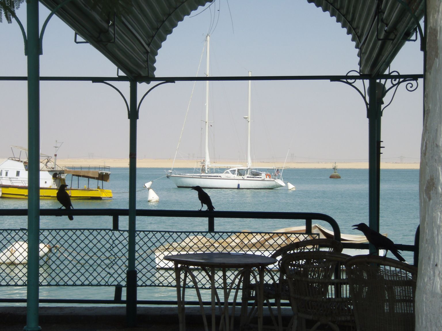 We are still hangin' at Port Ghalib in the Egyptian heat. We work in the mornings and late evening and siesta inside with the air-conditioning during the hottest part of the day. On Sunday I finished repairing the navigation lighting and spent two and a half hours up the main-mast. This would have been easier with five hands but as it was, at least I remembered to take up a thin line. If I discovered that I needed additional tools, I would lower a